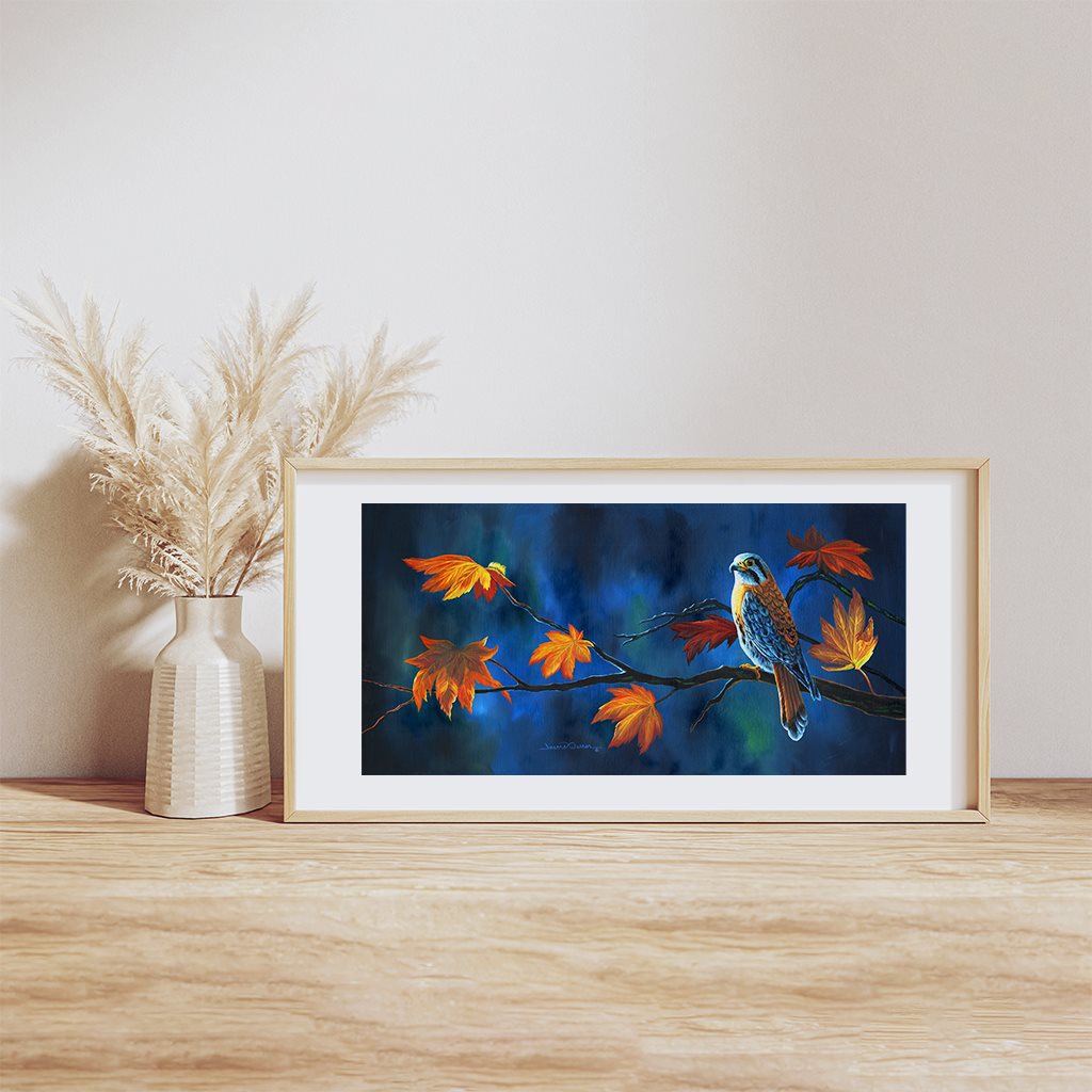 "Kestrel" - American Kestrel Falcon in Autumn Art Print
